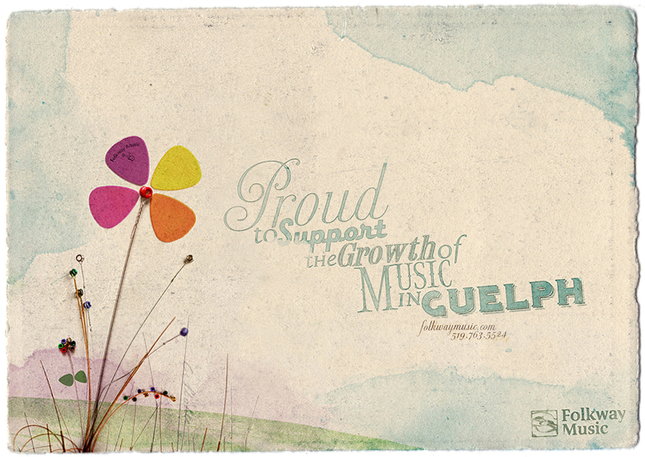 FolkwayMusic is a small vintage guitar store in Guelph, ON. I first started working with Mark close to 10 years ago, creating his first print ad. Since then, I’ve helped shape Mark’s communication messaging and overall creative look and feel. To Mark, having his advertising be as hand-crafted as the guitars he sells is important.