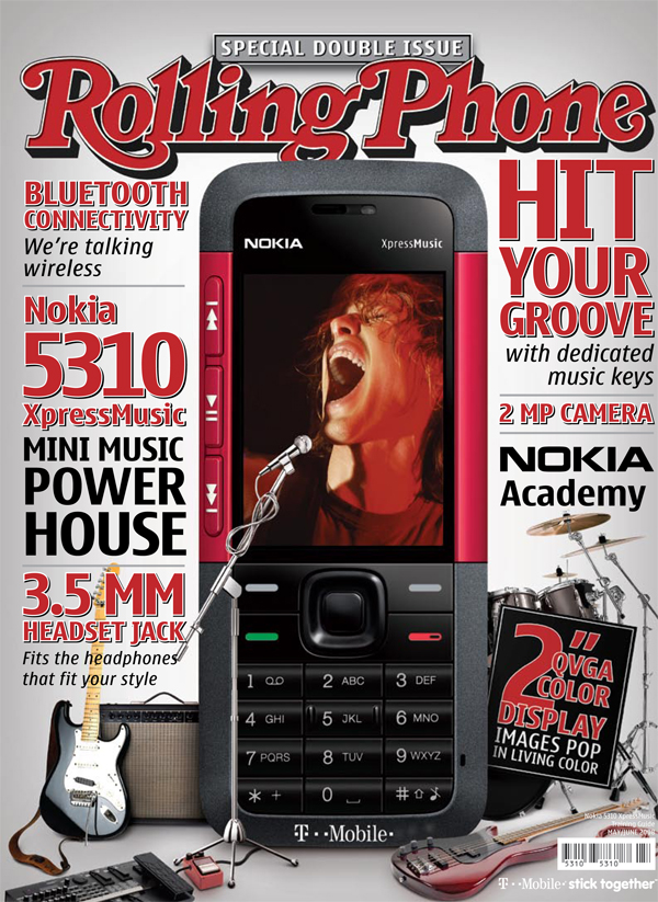 Seeing as it was an internal piece, we thought why not create a training ‘magazine’ rather than a manual, and use Rolling Stone, the quintessential music magazine, as our muse. Everything about the training magazine felt like a magazine; the front cover, the binding, the tonality of the copy, ads were embedded in the magazine that spoke to additional Nokia products and services, as well as a lose-leaf card that allowed reps to enter a contest. Subsequent training magazines were requested and produced, including NQ, Selle, and Unwired.