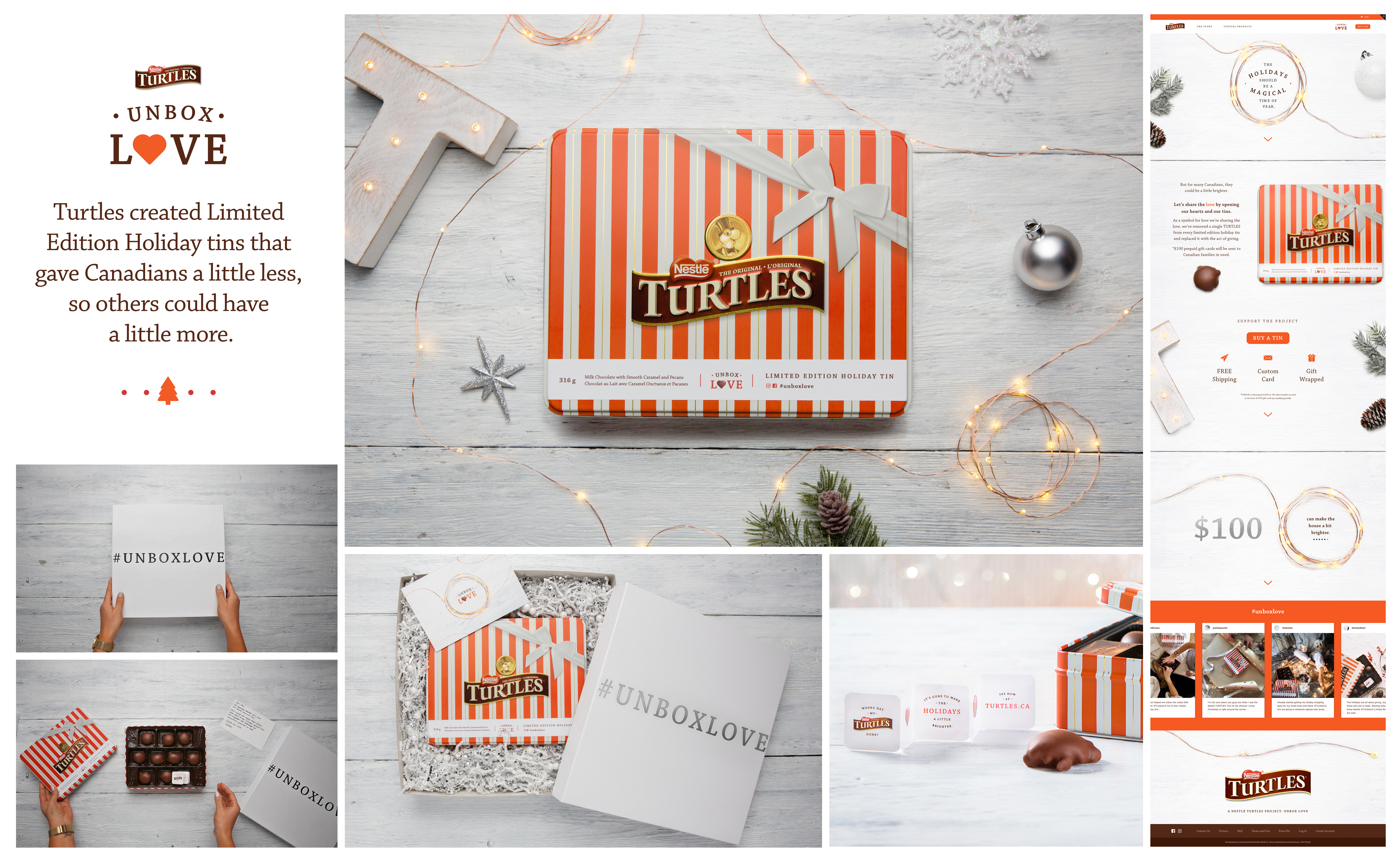 The solution? Change the conversation online about Turtles, by offering something our competitors couldn’t: a little less. #UnboxLove was a campaign where we created and sold limited edition holiday tins exclusively online, each missing a single Turtle, which symbolized sharing the love with families in need at the holidays.